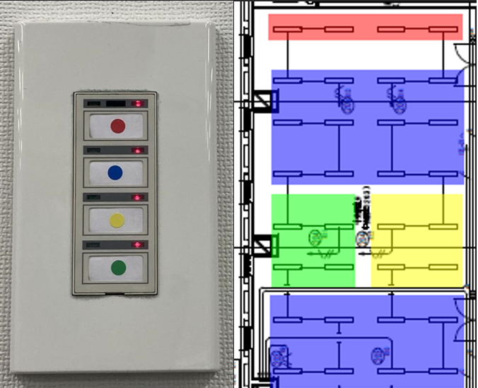 「会議室のプロジェクター画面が見やすいように、電灯の切り分けができるようにして欲しい。」