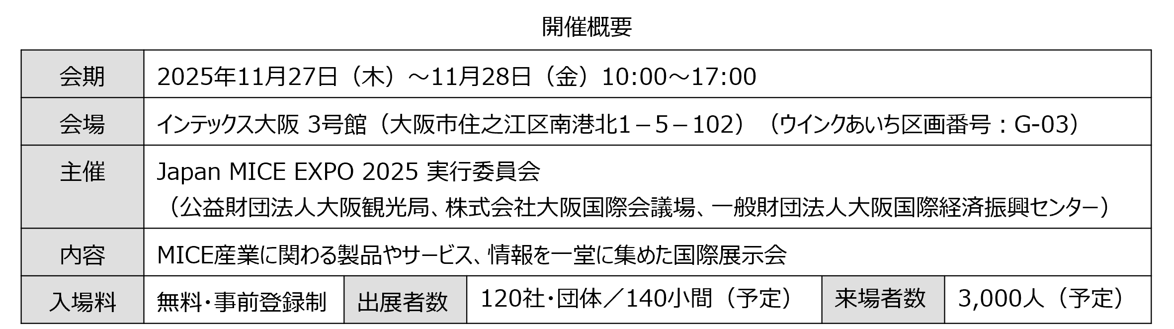 「Japan MICE EXPO」は、MICE*産業に関わる製品やサービス、情報を一堂に集めた国際展示会です。